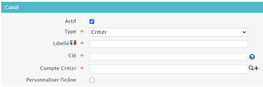 Choisissez le type de canal dans la liste déroulante : Ici “Critizr”
