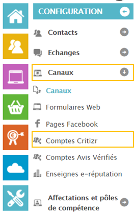 Votre ou vos comptes Critizr apparaissent dans « Configuration », « canaux », « comptes Critizr » :