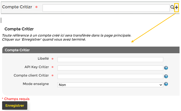 Le compte Critizr est transmis à easiware avec les informations que vous avez transmis en Amont (que vous trouvez dans le Back office de Critizr):