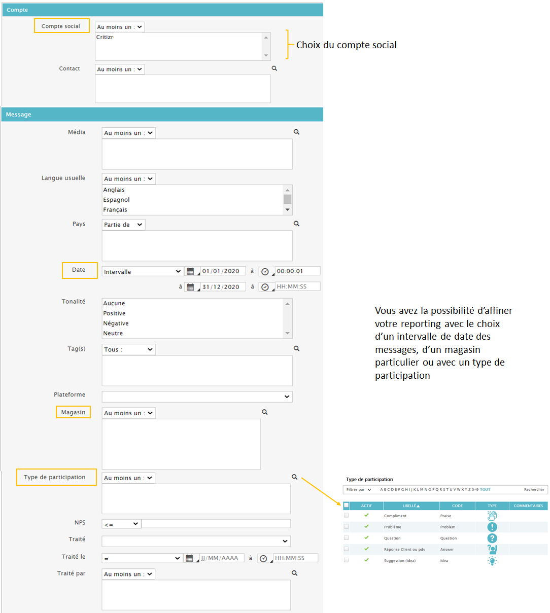 Le reporting sur les Avis Clients