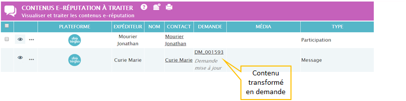 Le contenu E-reputation est créé automatiquement à partir d’un avis dans Avis Vérifiés. Cet avis est transformé en demande, ou non, en fonction des règles que vous avez établies en amont.