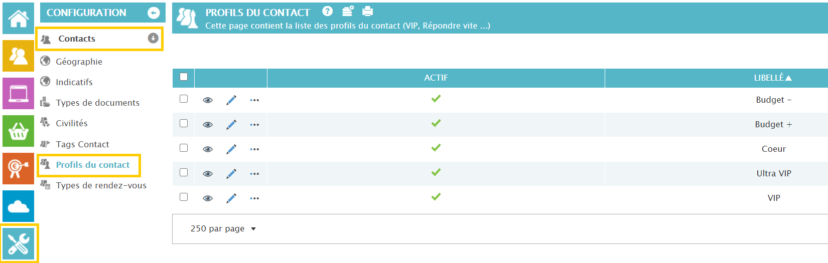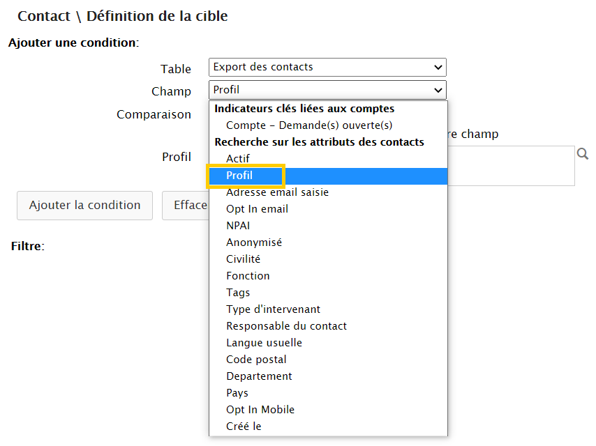 Vous avez configurer en amont la liste des profils de contact ici :