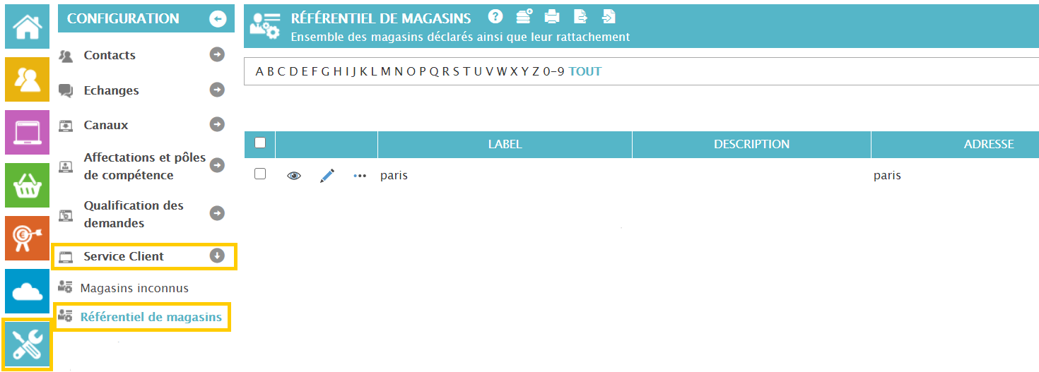 Vous avez configurer en amont la liste des magasins dans le référentiel ici :