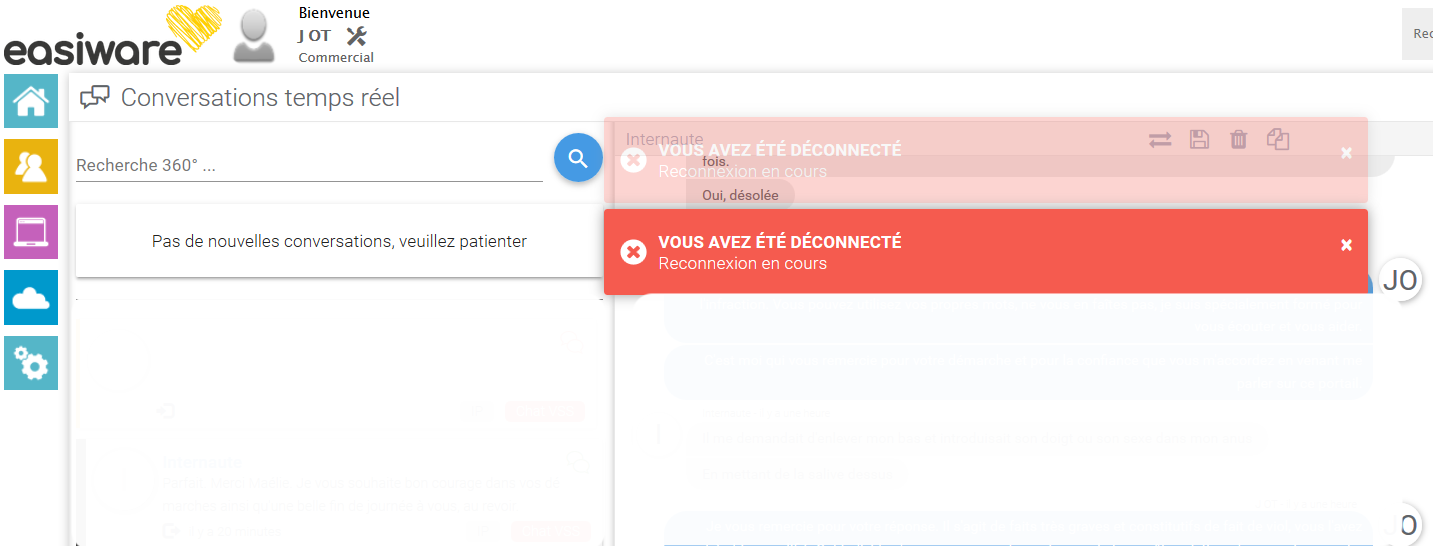 Transfert de conversations : Correction de l’anomalie lors du transfert de conversations qui provoquait la déconnexion de l’agent. Un rafraîchissement de la page permettant de reprendre la main.