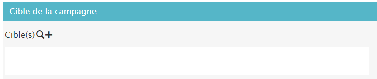 Sélectionnez la cible pour votre campagne que vous aurez créé en amont en cliquant sur la loupe ou créé là sur votre campagne en cliquant sur le + :