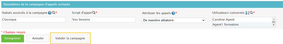 Si le test vous convient, vous pouvez lancer votre campagne d’appels sortants, en cliquant sur « valider la campagne » :