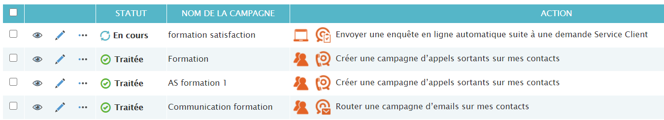 Vous pouvez voir sur votre campagne, son statut (3 statuts possibles : Brouillon, En cours , Traitée) :