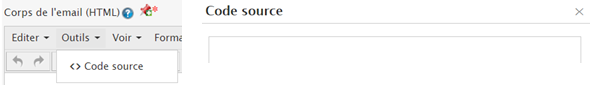 Demander à votre service marketing de vous créer des gabarits (des modèles) d’emails personnalisés afin de pouvoir l’insérer avec un éditeur HTML. Vous pouvez également acheter des gabarits en ligne, de nombreux gabarits sont proposés (comme par exemple chez themeforest). Dans les 2 cas, il faut copier le code HTML puis le coller dans easiware en cliquant sur « outils », « code source » et Ok :