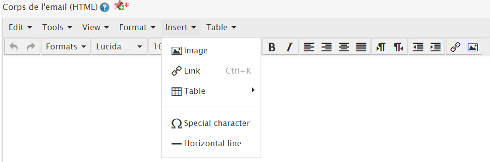 Si vous avez choisi le format HTML seulement, vous avez plusieurs possibilités pour faire votre texte :