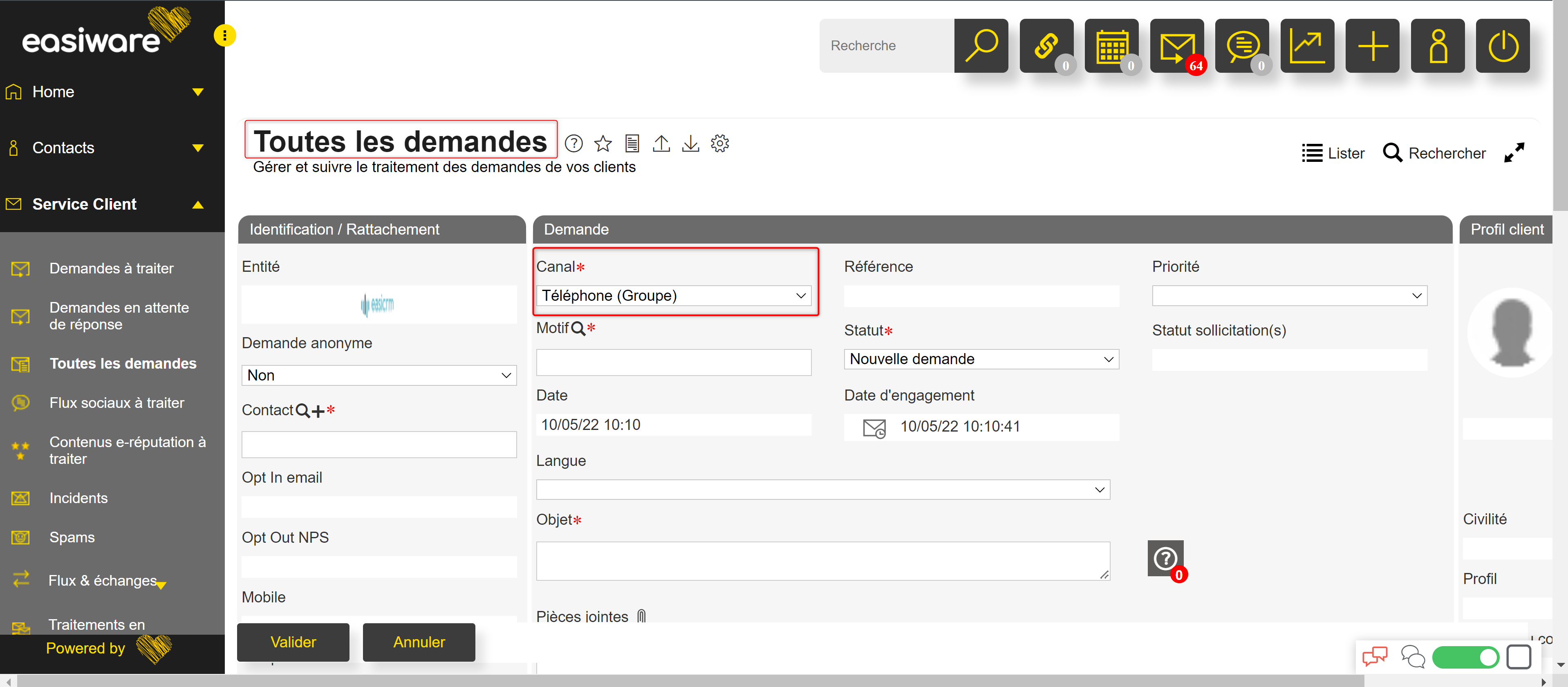Identifier le canal de réception des demandes concernées par un A/R en boucle.