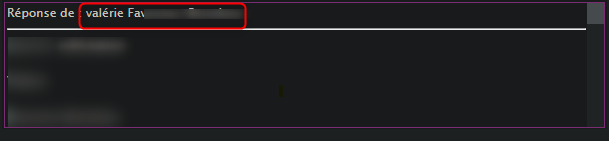 Quand la personne en destinataire (donc enregistrée dans la solution) répond, l'expéditeur s'affiche bien dans la réponse