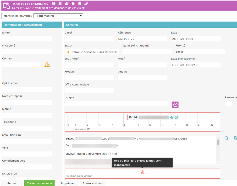 et le message « une ou plusieurs pièces jointes sont manquantes »