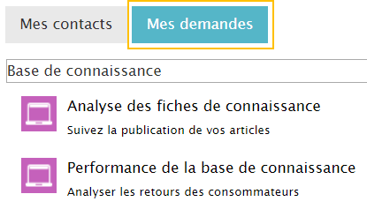Cliquez sur “demandes” et 2 reportings sont prédéfinis pour la base de connaissance :