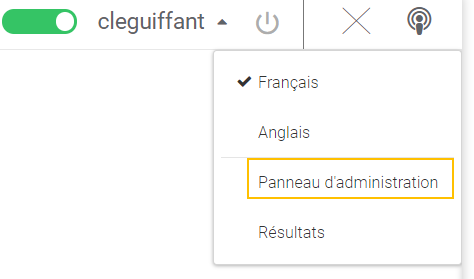 Pour administrer le chat , cliquez dans le menu déroulant à coté de votre identifiant sur « Panneau d’administration » :
