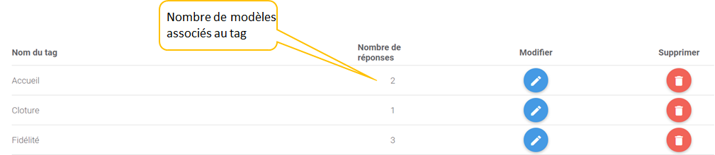 Vous pouvez créer autant de réponses rapides que vous voulez sur chaque Tag.