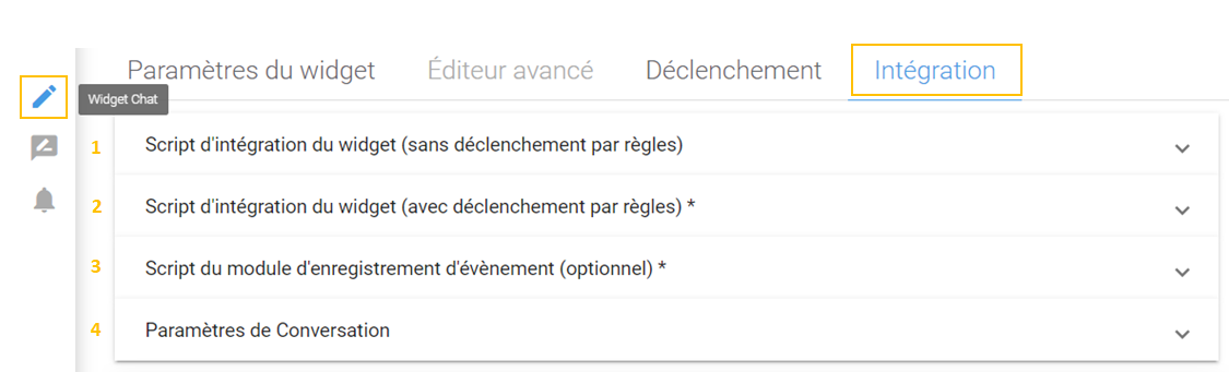 2- Le Widget est régulé par Smart Triggering donc script à choisir lorsque vous avez des règles déclenchement.