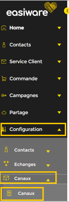 Cliquez sur “configuration”, “canaux” et “canaux” :
