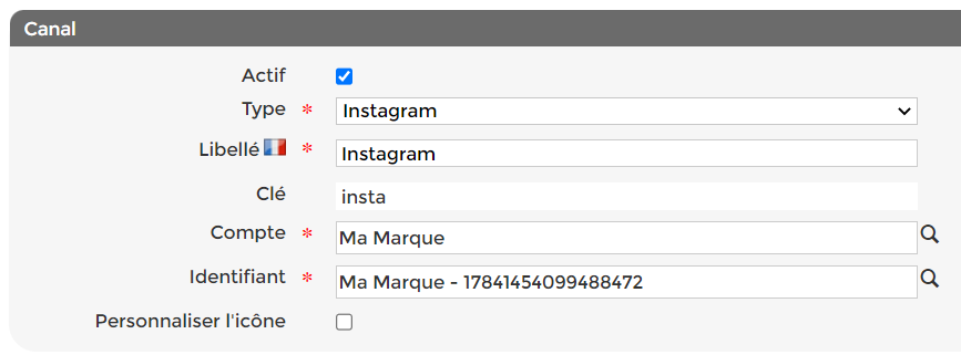 Choisissez le type de canal dans la liste déroulante : Ici “Instagram”