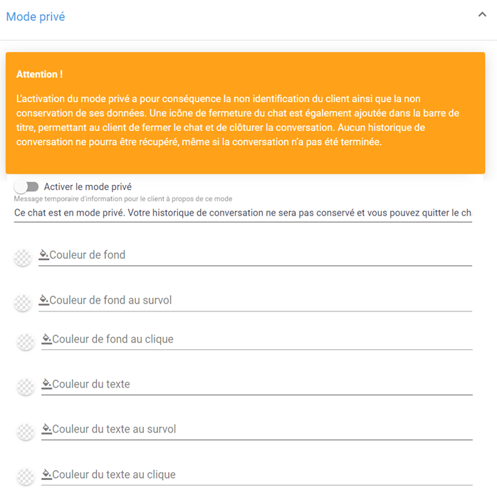 La conversation du client ne pourra pas être conservée et son historique non plus (A la fermeture du widget par le client)