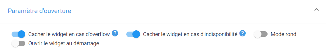Paramètres d'ouverture du widget