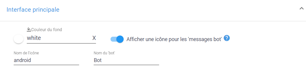 L’icone du bot (image et nom) : Pour trouver un nouvel icone vous pouvez aller sur le site : https://material.io/icons/