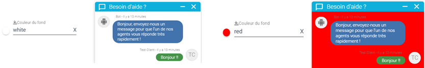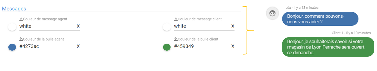 Les messages agent et client : Personnalisation de la couleur du texte et de la bulle coté agent et client