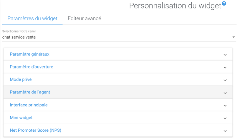 Dans ce menu vous aurez la possibilité de personnaliser le style du widget, avec les fonctionnalités proposées par défaut ou l’aide de l’éditeur avancé. Attention l’éditeur avancé demande des compétences en CSS :