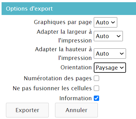 l’export : Chaque format proposera ses options de mise en page (portrait/paysage, numérotation des pages, etc.)