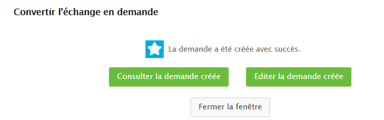 Cliquez sur l’œil et allez bas sur l’historique de la demande. Le dernier échange comporte un ciseau. En cliquant dessous vous allez pouvoir transformer cet échange en nouvelle demande.