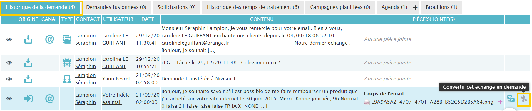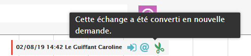 Le dernier échange comporte un ciseau. En cliquant dessous vous allez pouvoir transformer cet échange en nouvelle demande.