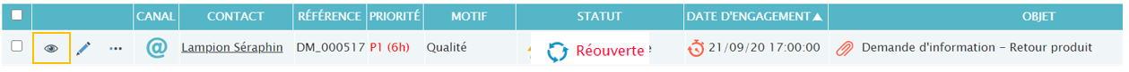 N’oubliez pas de clôturer la demande initiale qui a été réouverte. Dans l’historique de la demande réouverte, vous avez l’information dans son historique que le dernier échange entrant a été converti en nouvelle demande :