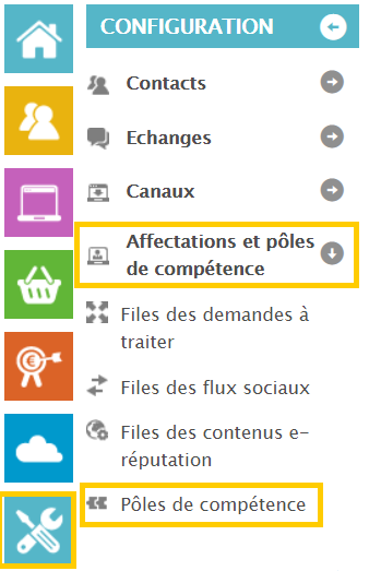 Cliquez sur “configuration”, “affectations et pôles de compétence” et “pôles de compétence” :