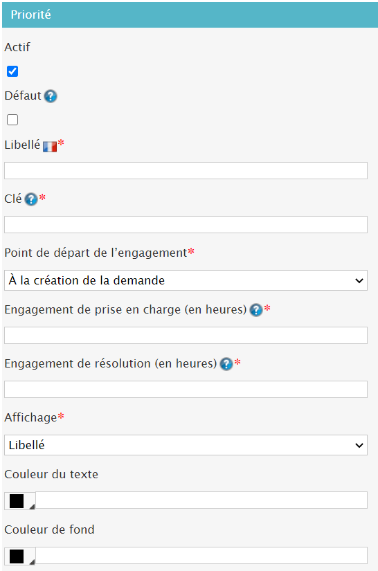 Dans le libellé indiquez le nom de la priorité (souvent P1, P2, P3…)