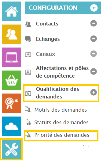 Cliquez sur “configuration”, “qualification des demandes” et “priorité des demandes”:
