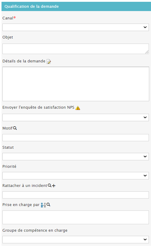Indiquer la personne en charge de la demande et un groupe de compétence