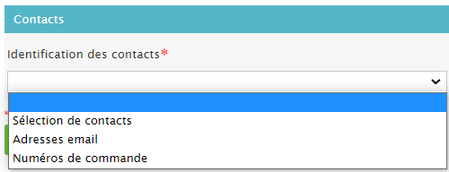 Dans la partie “Contacts”, vous sélectionnez les clients pour lesquels vous créez les demandes de 3 façons :