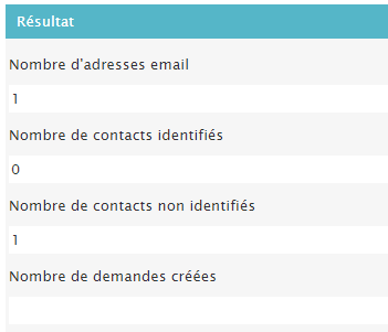 Les demandes en masse seront créées uniquement pour les contacts faisant partie de la base contact. Si vous écrivez une adresse email inconnu dans easiware, aucune demande ne sera créée et vous aurez cette information: