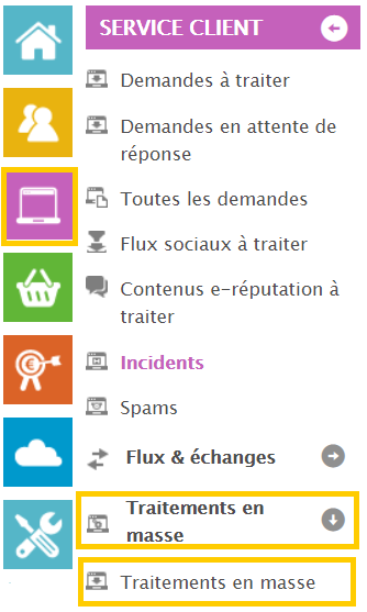 Cliquez sur “service client”, “traitements en masse” et “traitements en masse”: