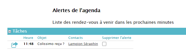 Quelques minutes avant l’heure programmée du rappel , vous serez averti par une fenêtre pop up :