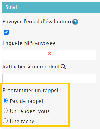 Ce rappel se créé lors du traitement de la demande client sans la partie “suivi” , “programmer un rappel”.