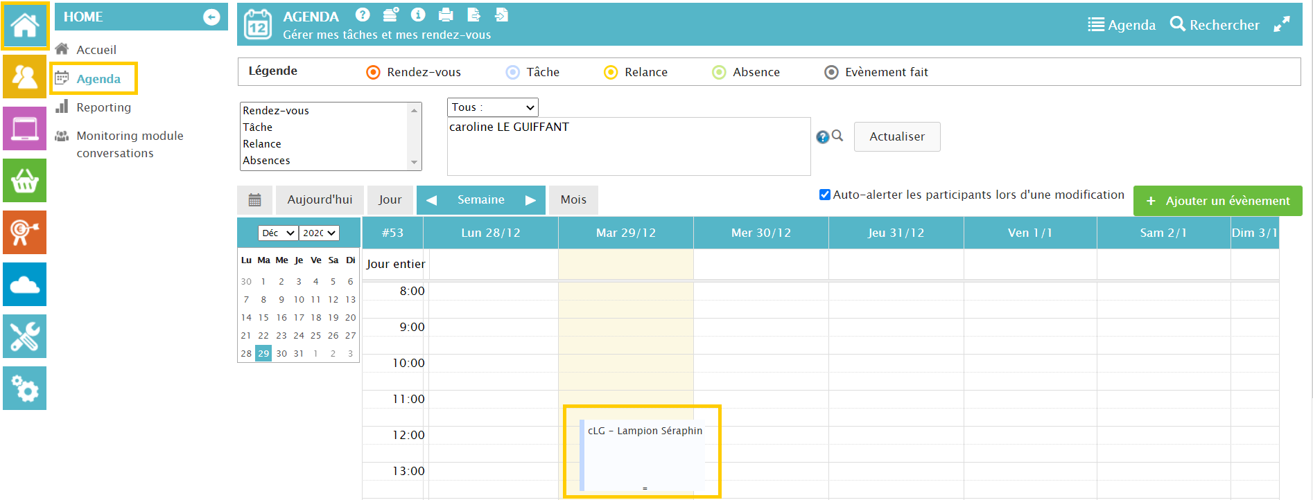 Ce rappel apparaitra également dans votre agenda avec un accès par le menu accueil :