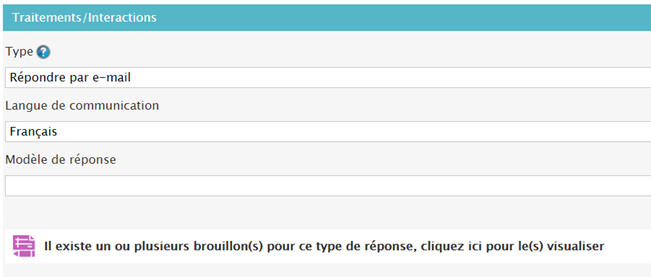 Le mail que vous avez fait s’enregistre en brouillon. Lorsque vous revenez sur la demande client, le ou les brouillons faits se trouvent toujours dans la partie “traitements/interactions” comme ci dessous :