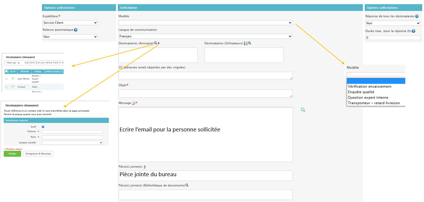 Vous trouverez l’activation du bloc sollicitation en bas de l’email que vous envoyé au client. Vous pouvez en même temps faire un mail au client et faire un email de sollicitation à une personne externe.