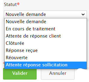 Vous allez mettre en statut “ attente réponse sollicitation” et cliquer sur “valider”.