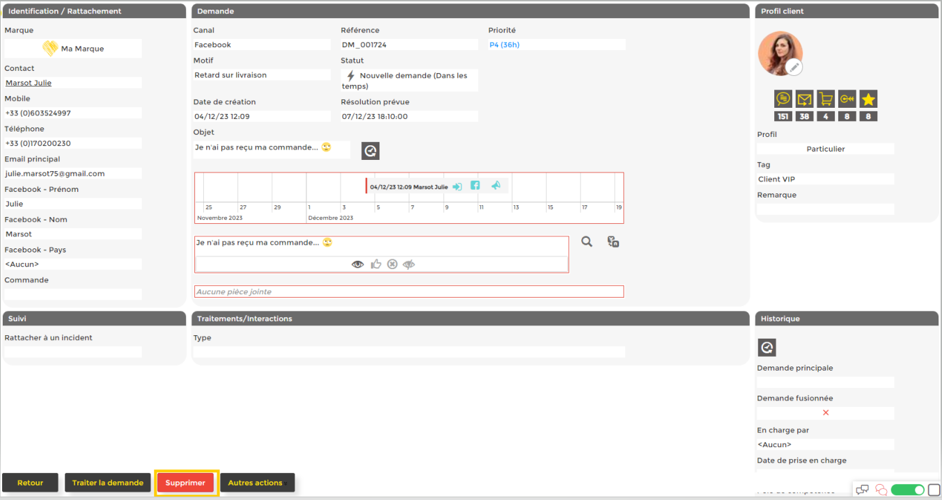 2- Suppression depuis une page de demandes :