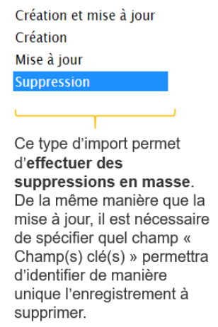Attention de bien choisir lors de l’import l’option de Suppression