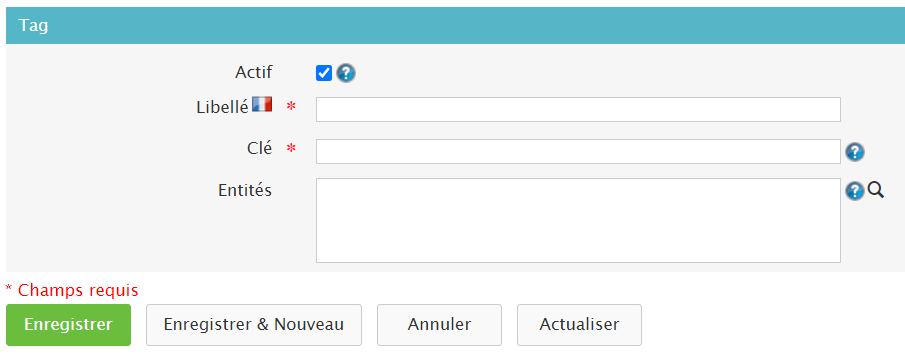 Vous pouvez à tout moment désactiver le tag en décochant la case “actif”